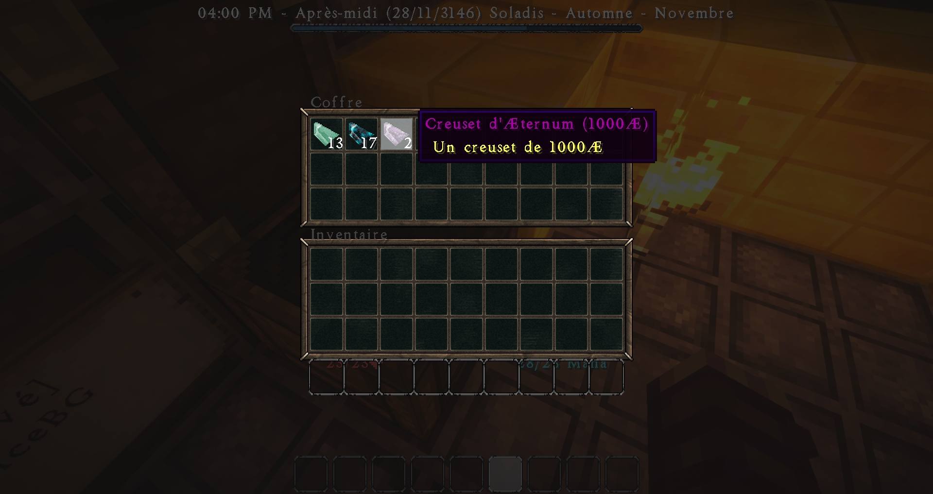 L'Aeternum est consultable sur le serveur en effectuant la commande /argent ou /aeternum afin d'afficher votre trésorie. Cette monnaie qui n'est pas stockée physiquement est limitée à 20 000 Æternum par joueur.