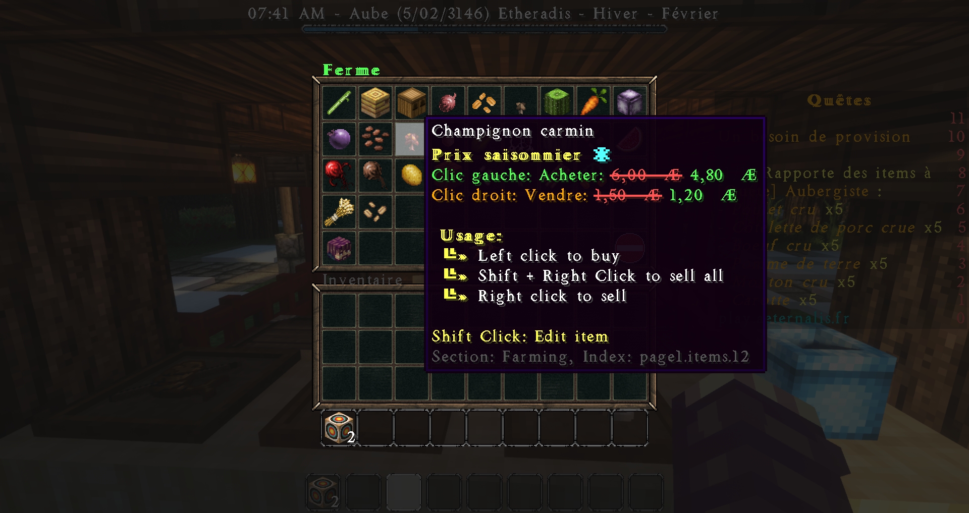Le marché d'Aeternalis est influencé par des cycles de saison dynamiques. Les prix des marchandises peuvent varier en fonction des conditions climatiques, créant ainsi un environnement économique en perpétuelle évolution. Soyez attentif aux fluctuations saisonnières pour optimiser vos achats.